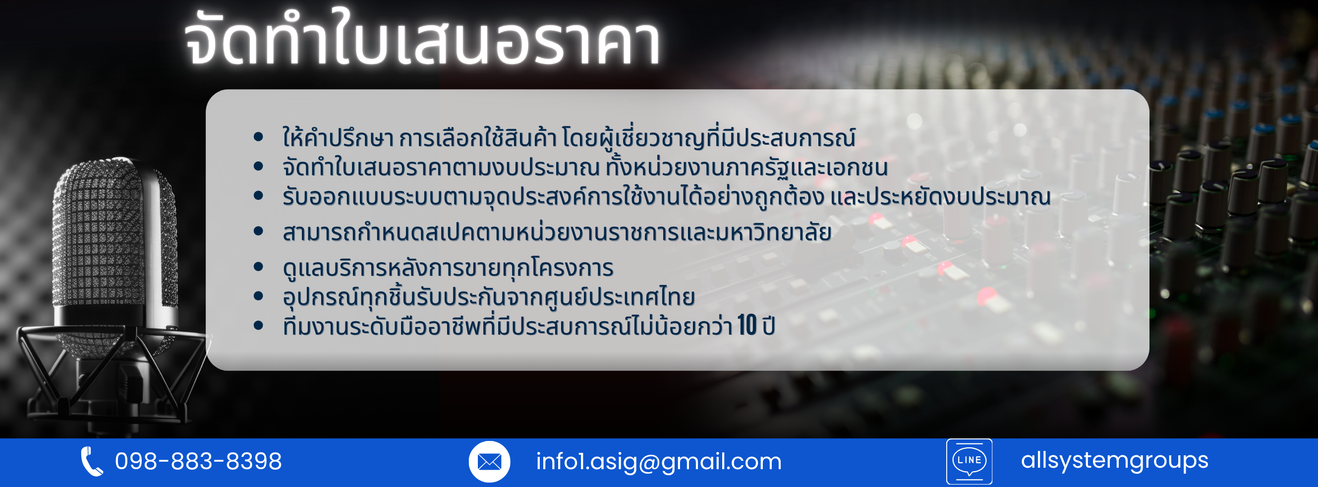 ทางบริษัทเป็นผู้เชี่ยวชาญทางด้านการออกแบบระบบ Studio งานด้านภาพและเสียง รวมทั้งเป็นตัวแทนจัดจำหน่ายอุปกรณ์เกี่ยวกับการถ่ายทำ ห้องประชุม ห้องนวัตกรรมการศึกษา "Metaverse in Education"การถ่ายทอดสด Live Streaming เป็นต้น
